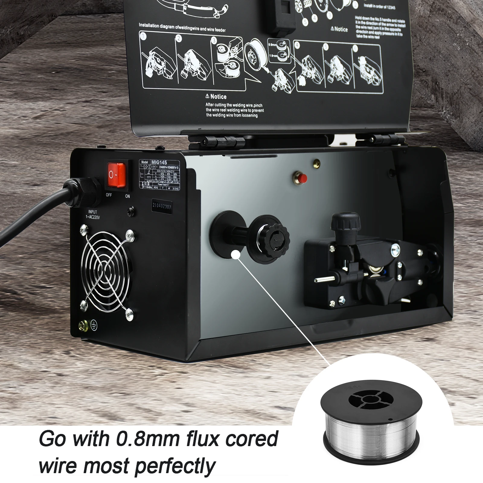 Diámetro del alambre de soldadura aplicable: Núcleo de flujo 0,6/0,8mm
