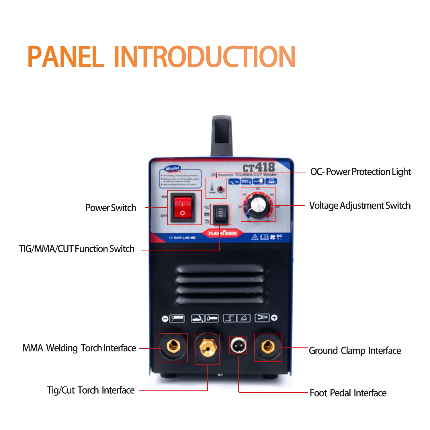 【Aplicación del producto】CT418 es una máquina de soldadura multifunción, con corte, soldadura tig, soldadura MMA y pulso. Adecuado para la producción artesanal, hogar, pequeñas fábricas. Con él puedes tener más posibilidades.