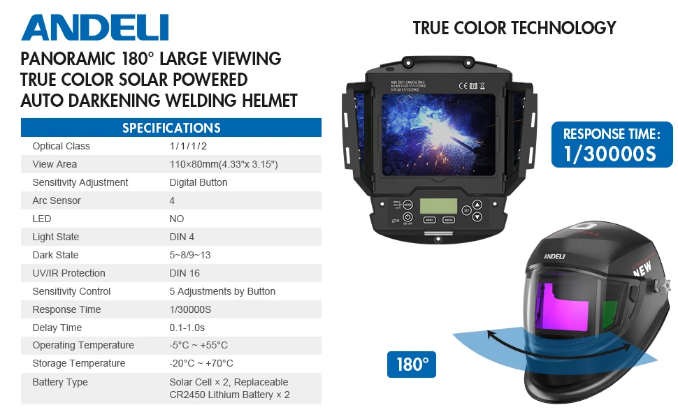 Sumérgete en tu trabajo con confianza gracias al casco de soldadura ANDELI G STAR. Equipado con tecnología de oscurecimiento automático, este casco garantiza una visión clara y nítida en todo momento. Con 4 sensores de alta sensibilidad, se ajusta instantáneamente a los cambios de luz, protegiendo tus ojos de los deslumbramientos repentinos.
