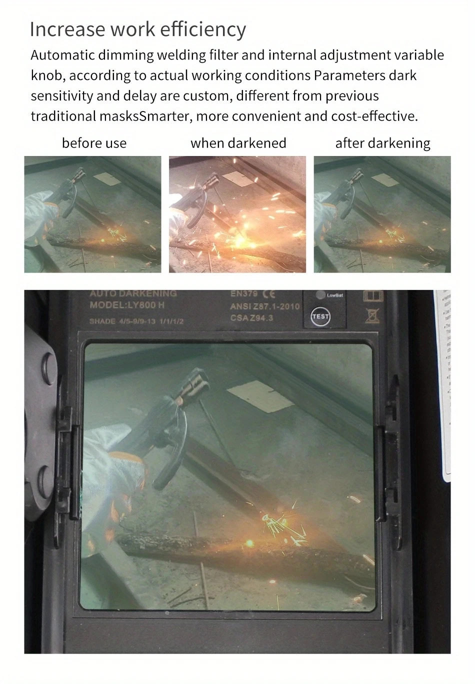 Desde chispas brillantes hasta arcos intensos, esta pantalla de soldadura se adapta a cualquier entorno, asegurando una visión clara y segura en todo momento.
