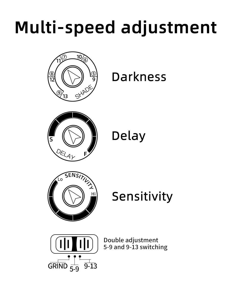- Sensitivity: stepless control