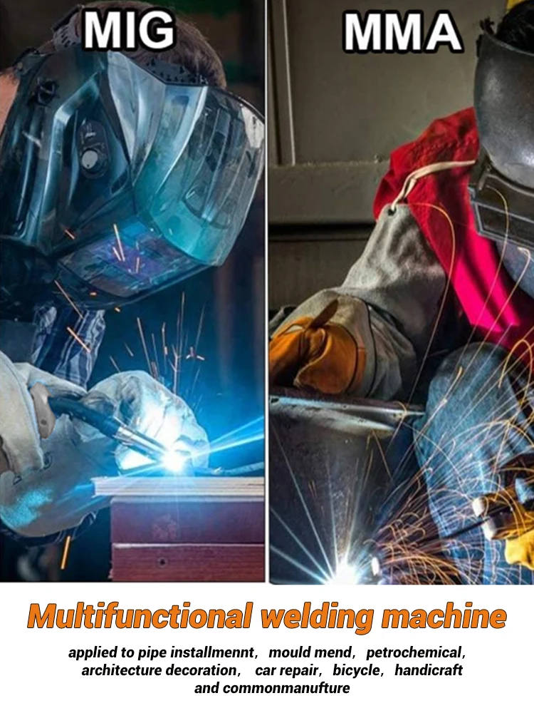 ⚡️Máquina de soldadura mig semiautomática 220V, soldadura por arco MMA 2 en 1 sin gas. Puede soldar acero inoxidable, aleación de aluminio y acero al carbono, que normalmente se utiliza para hacer el tanque de combustible del automóvil, tractor y piezas del bastidor de la motocicleta, intercambiadores de calor y así sucesivamente.