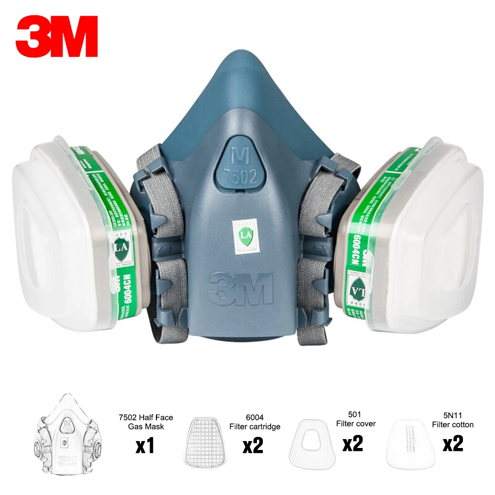 (Máscara respiradora 7502 + cartucho de filtro 6004*2 + 5 N11 filtro de algodón * 2 + 501 cubiertas de filtro * 2)
