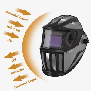 Equipado con LED, es un casco sobresaliente para el soldador profesional que trabaja en cualquier situación. Tiene filtros de visión de oscurecimiento automático con 2 sensores, el principal área de visión 100 × 53mm (3,94 «X2.09»), la mejor calidad óptica (1/1/1/2),. Proporciona la vista del color verdadero. El rango más amplio de nivel de sombra (DIN 5 ~ 9/9 ~ 13) y la sombra de luz de pulido