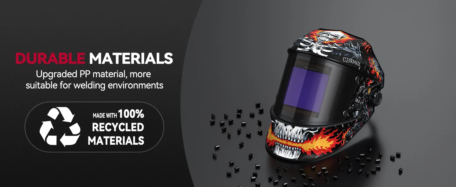 MATERIAL VERDE-Fabricado con materiales PP ecológicos.Las pruebas muestran un rango de temperatura de funcionamiento de -5°C a 55°C, un rango de temperatura de almacenamiento de -20°C a 70°C, una resistencia a la tracción de hasta 120 MPa y un módulo de flexión de hasta 4000 MPa, lo que garantiza una mayor flexibilidad para soldar cascos.
