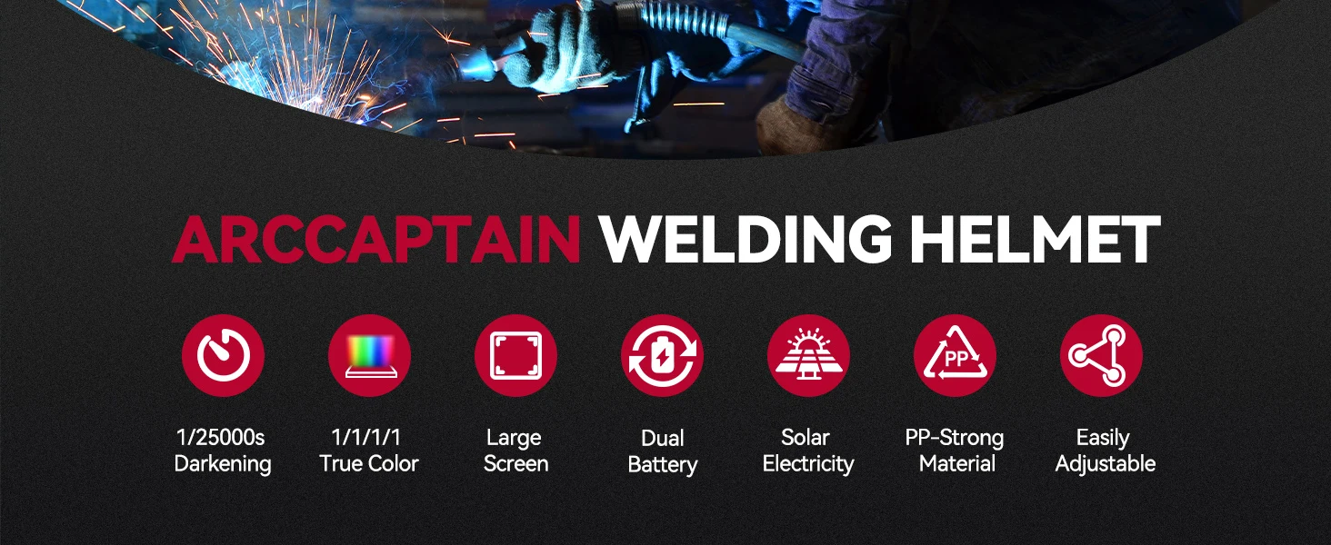 El diseño ergonómico y ajustable del casco de soldadura ARCCAPTAIN permite un uso prolongado sin molestias. Su estructura es ligera pero resistente, ideal para profesionales y aficionados que buscan máximo rendimiento sin sacrificar comodidad.