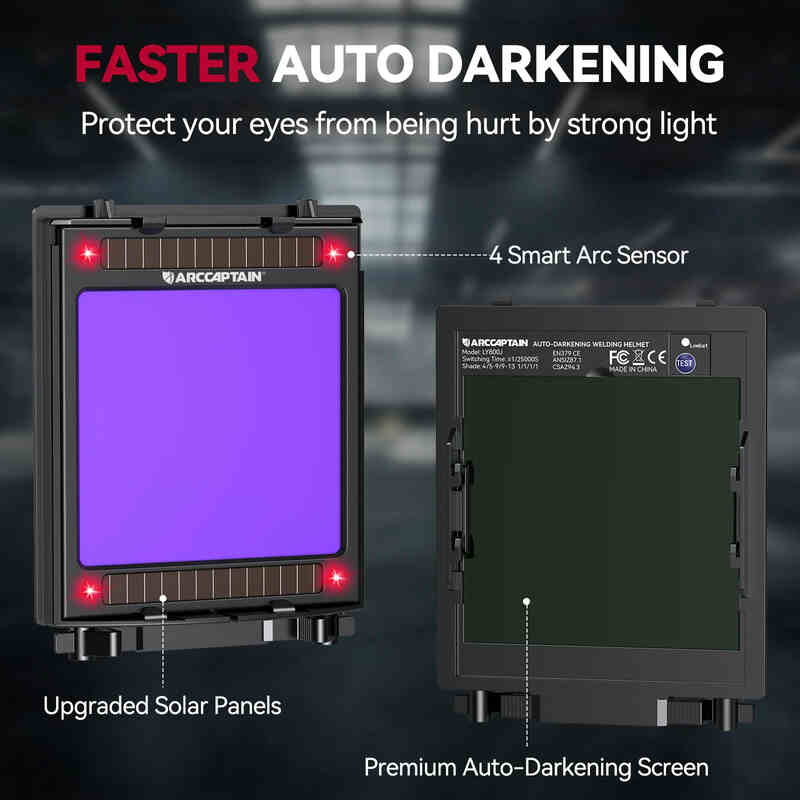 Este casco incorpora 4 sensores de arco de alta sensibilidad, lo que garantiza una respuesta rápida y efectiva ante cualquier tipo de soldadura, incluyendo TIG, MIG y corte por arco. Su alimentación solar y por batería prolonga su vida útil, evitando cambios frecuentes de pilas y asegurando que esté listo para cualquier trabajo.