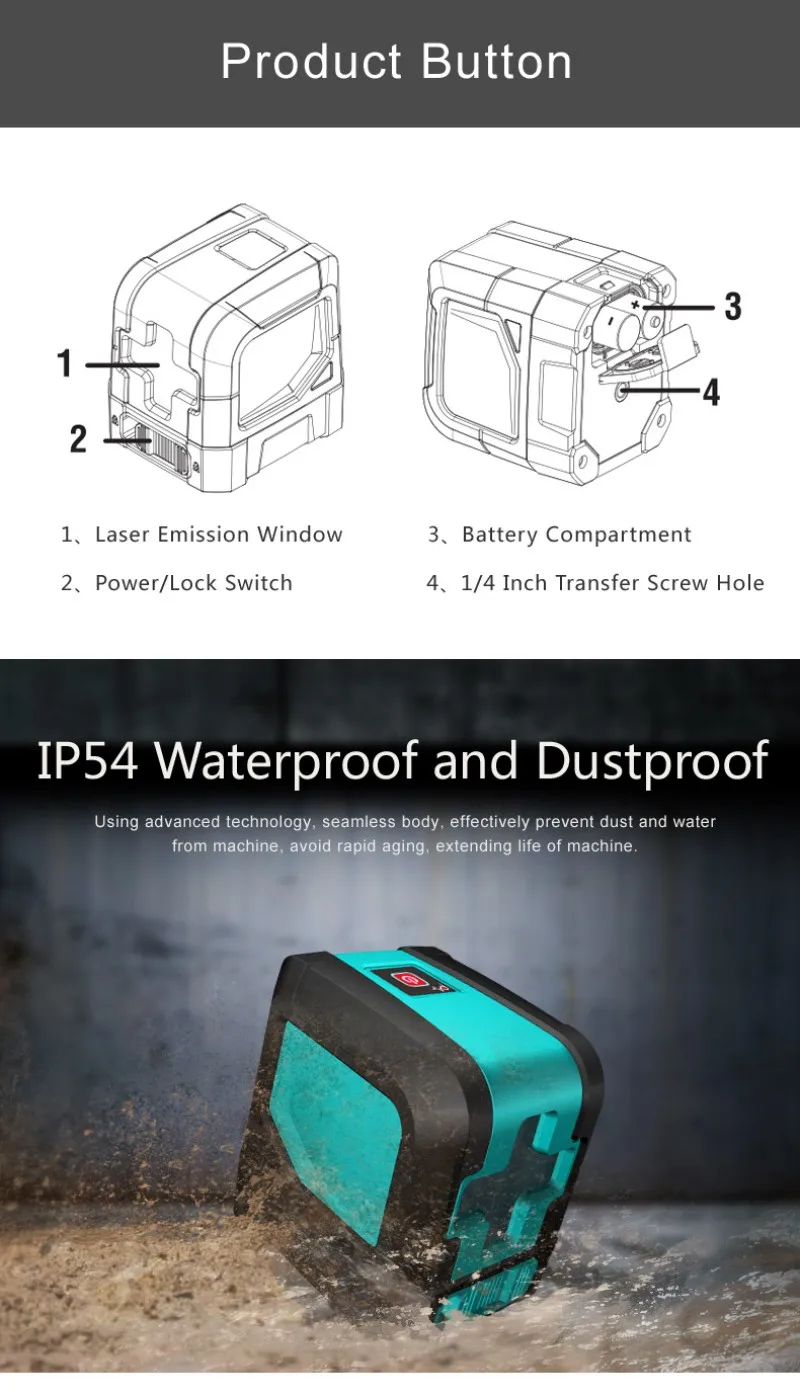 ⚡️Con una luz verde para una clara visibilidad durante los proyectos nocturnos, este aparato es perfecto para enmarcar casas o instalar marcos de puertas. El soporte de trípode ajustable se adapta a superficies irregulares y puede utilizarse en diferentes ángulos. Viene con pilas incluidas, así como un folleto de instrucciones con diagramas.