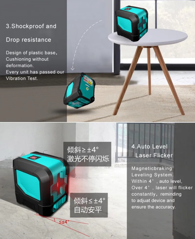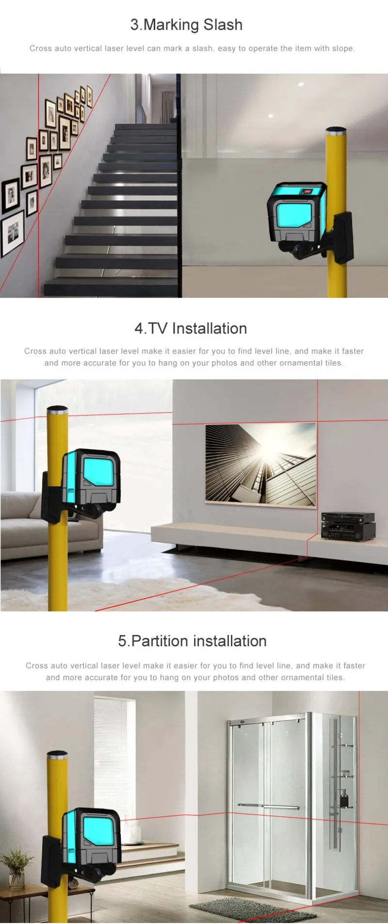 ⚡️El nivel láser es una herramienta práctica y fácil de usar para contratistas y aficionados al bricolaje. La línea láser horizontal muestra el nivel de 0 a 9 grados, mientras que el segundo láser vertical proporciona una nivelación de precisión de hasta 5 m para fijar armarios y colocar baldosas.