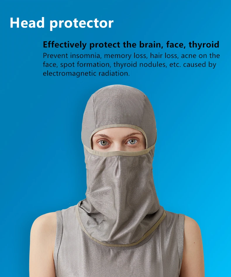 Ropa de ondas antielectromagnéticas para contactar con un dispositivo electrónico, la cubierta de la cabeza de ondas antielectromagnéticas puede conducir ondas electromagnéticas de forma rápida y efectiva, protegiendo así el cuerpo de las ondas electromagnéticas.