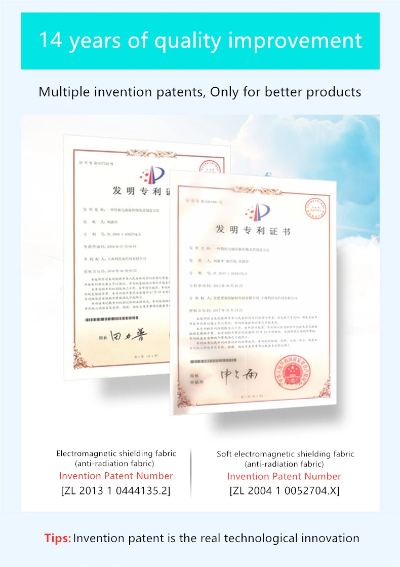 - Main radiation protection material: 100% Silver fiber