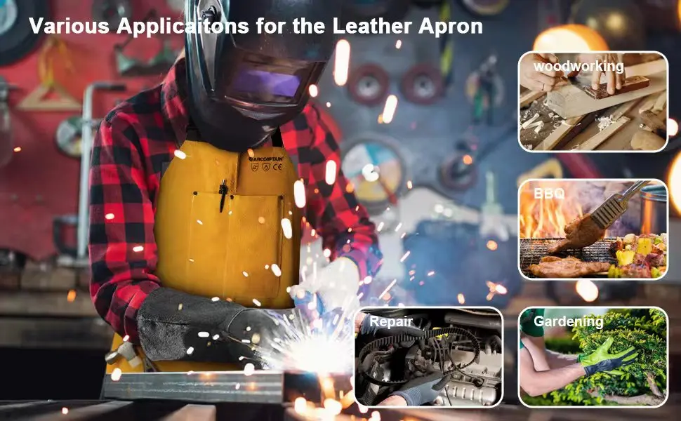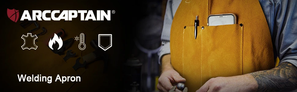 ARCCAPTAIN, delantal de cuero para soldar, carpintero, herrero, jardín, cuero de vaca, soldador eléctrico resistente al desgaste, delantal antiescaldado